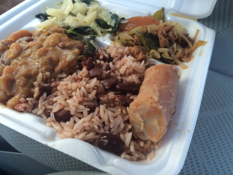 Bobby’s Meals is home to an igneous brew of vinegar and chili called escovitch that’s slathered over plump, flaky fillets. Like the vegetarian Ital plates, the fish comes alongside a mound of fragrant basmati rice studded with tender red beans. There are stewed peas: kidney and black beans, along with tight, smooth pigeon peas cooked off in a slightly sweet, warming union of diced turnips, carrots, beets, and pumpkin flesh.
