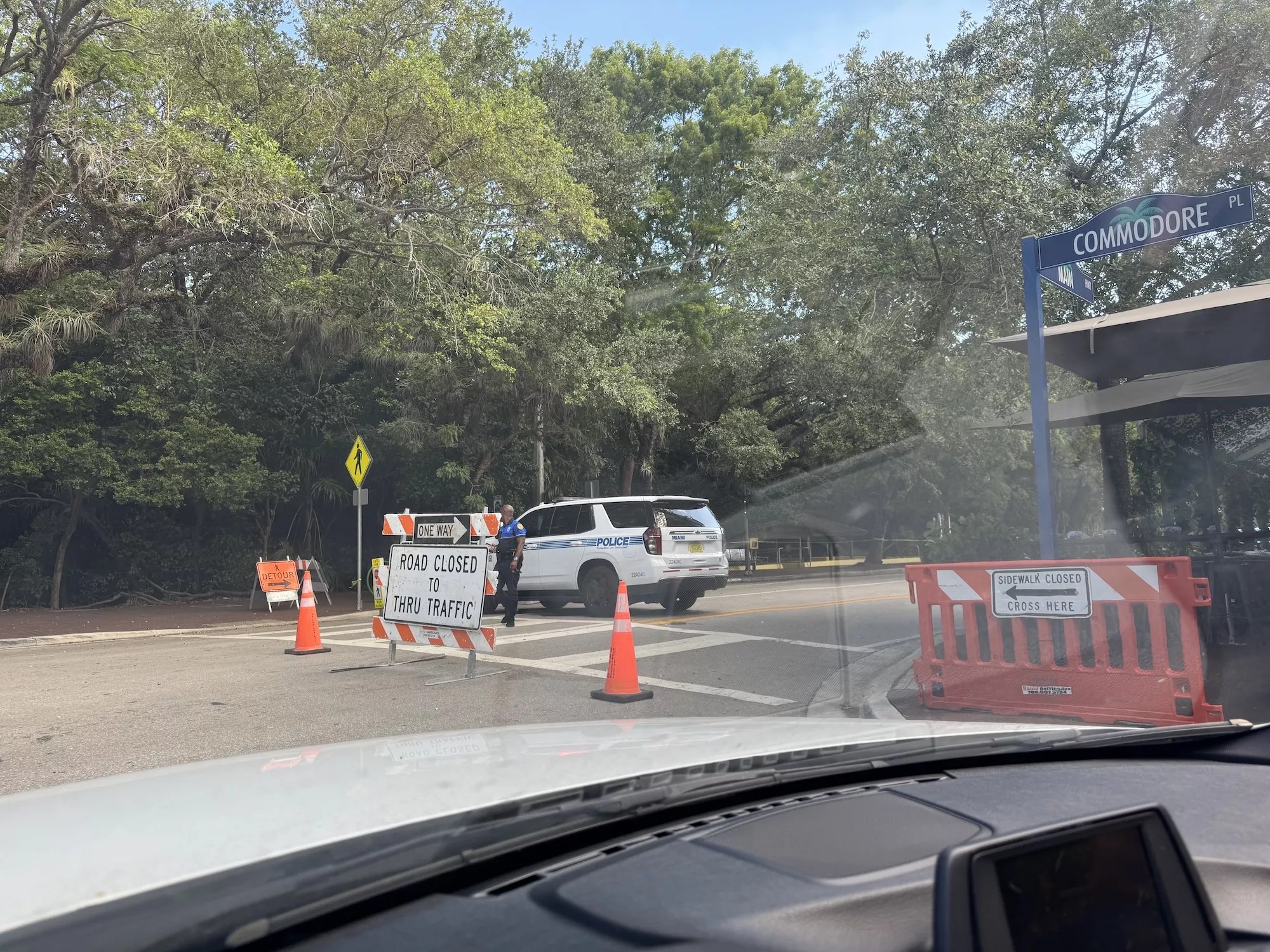 Police blocked off streets surrounding the Coconut Grove Playhouse.