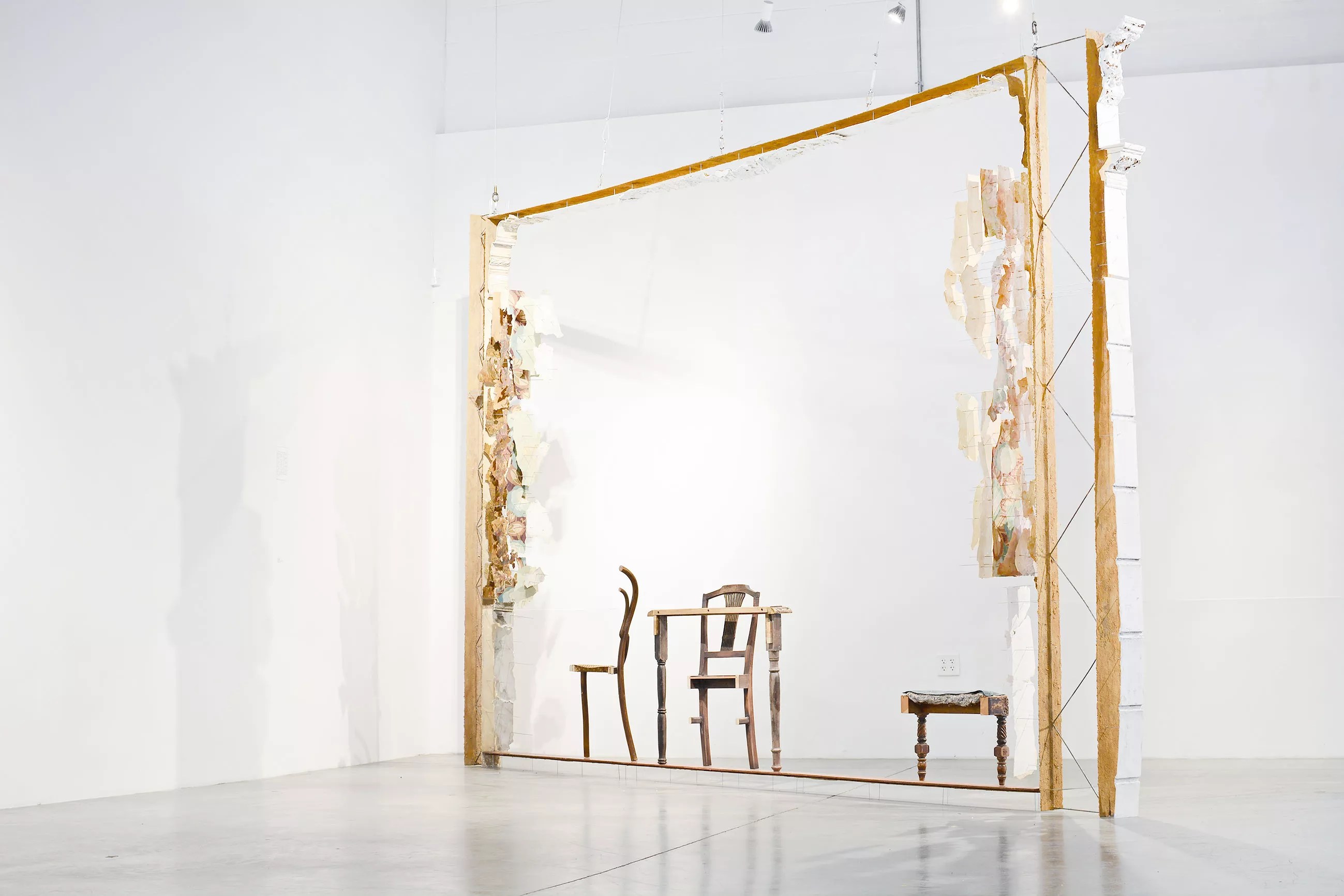 Jumping from her melted acid memory of architecture in the inaugural group show, Cárdenas launches the possibilities of the new gallery with a solo show of her latest works exploring the build/destroy aspects of architectural entities. In “Vice Versa,” Cárdenas, a Colombian artist, takes the sculptural craftsmanship of creation and re-examines it in a sort of reverse archaeological dig.
