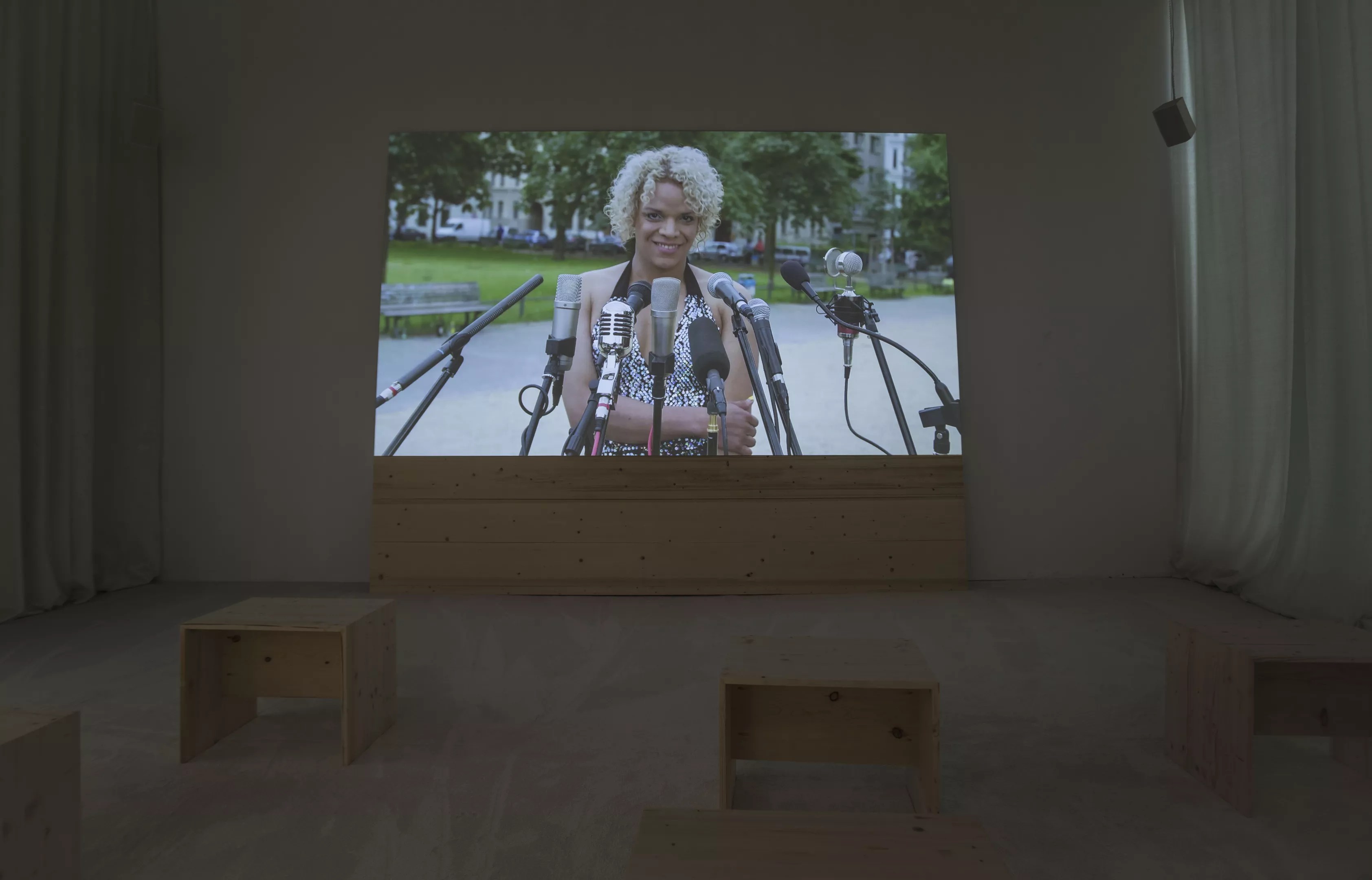 Pauline Boudry and Renate Lorenz’s Silent (2016). Installation view at Biennale of Moving Images, Faena Bazaar.