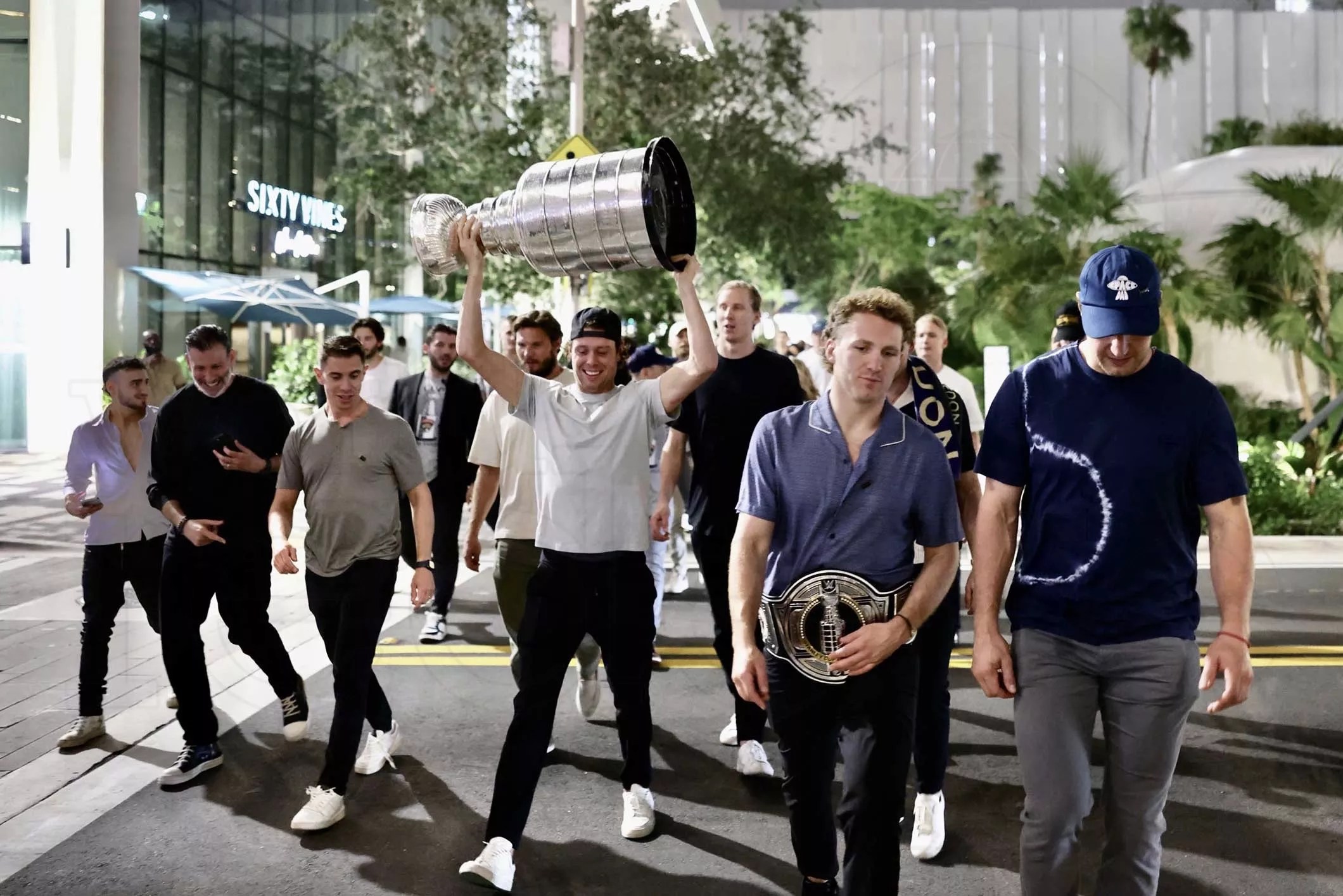 The Florida Panthers pulled up to the function at E11even Miami to celebrate their second consecutive Stanley Cup win.
