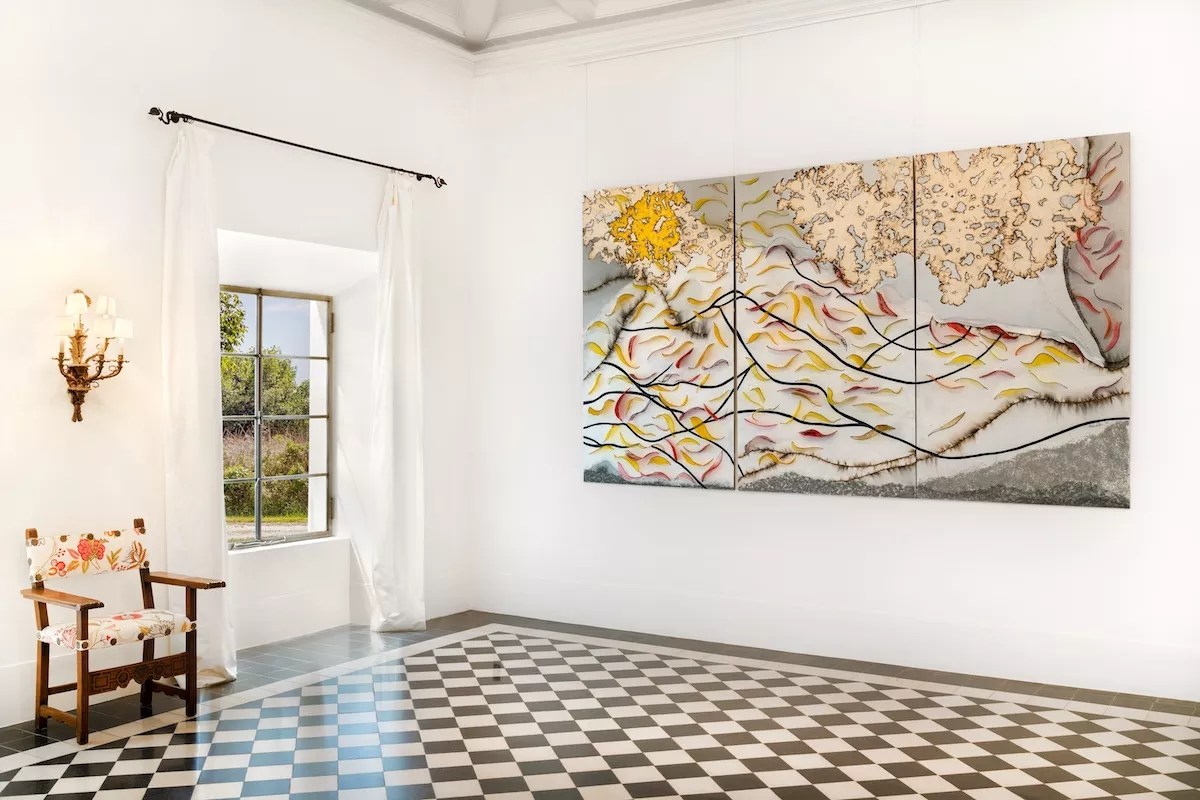 Installation image of Mira Lehr’s painting, Pandora’s Blossoms, at Miami’s Deering Estate