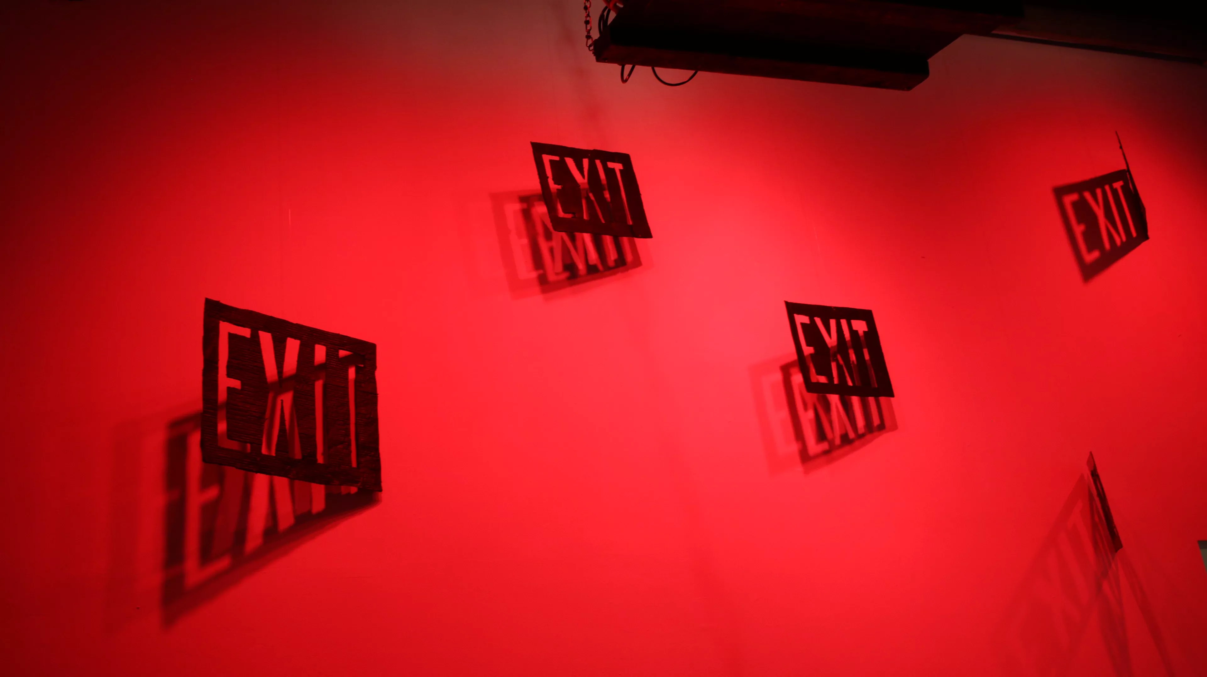 Small but significant transformations characterize many of the pieces made by the 15- to 18-year-old artists: Exit signs are made more ambiguous, safety cones are made less erect, a chalk outline is given a smiling face. They’re each an expression of a theme that the students, with the guidance of De Victoria and her fellow artist mentor, Francesco Lo Castro, came to on their own: the normalization of violence.