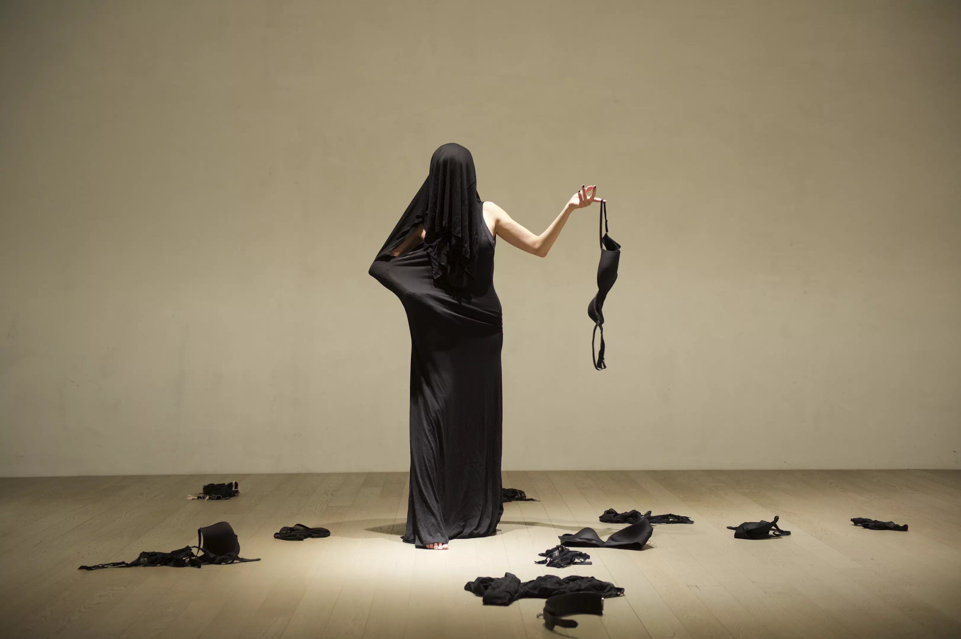 And a good alternative it was. The 45-year-old artist can already boast an impressive career. Arjona has performed at the Louvre; in Marfa, Texas; at the MFA Boston; the Watermill Center; and other prestigious institutions and festivals. A major solo exhibition of her work is on display at the Museum of Modern Art in Bogotá through May. She’s heading to MDC’s Museum of Art + Design (MOAD) in Miami this week for a provocative performance of an “unconsummated striptease” at Miami Light Project’s Light Box that speaks to the experience of women worldwide.