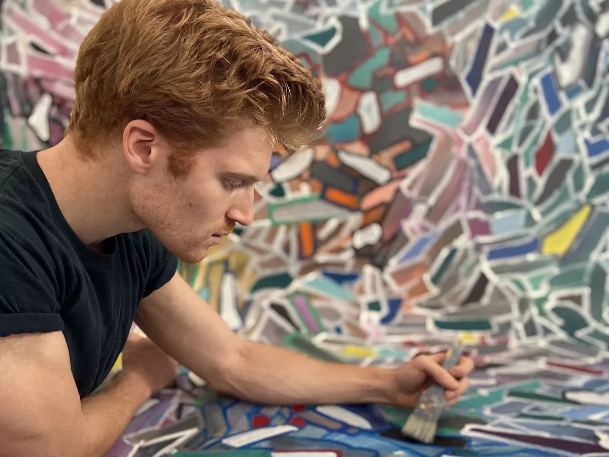 Peters experimented and tried to replicate what he observed in art he liked. He would work on a piece, set it aside, and come back to it weeks later, following the previous textures and patterns as a guide to creating something new and more effective. He gravitated toward abstract expressionism and was inspired by the work of Joan Mitchell, Franz Kline, and Willem de Kooning. He likes the way those artists manipulate paint and use color and shape to express something.