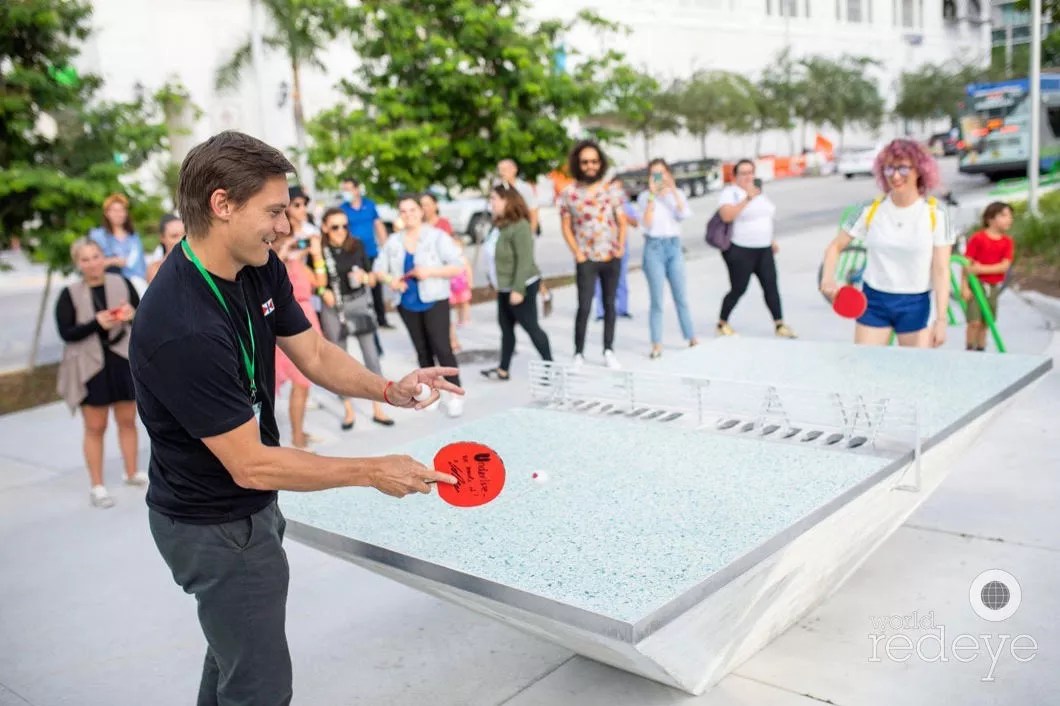 The Underline celebrated the unveiling of its newest public art installation, artist Cara Despain’s “Water/Tables.” The installation, in partnership with Miami-Dade County Art in Public Places, revealed two functional ping pong tables and a compelling narrative about climate change.
