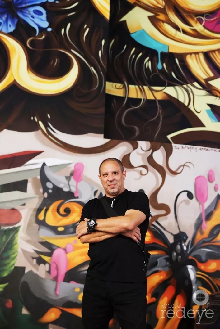 Kai is an international artist recognized for his single-frame storytelling, unrivaled use of cement, and signature IF (“Imaginary Friend”) character. Born in Los Angeles to a French-Tunisian father and Mexican-American mother, his work is rooted in a distinctive blend of history, tradition, and culture. World Red Eye