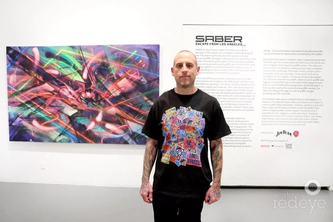 “Saber: Escape from Los Angeles” is an exhibition presented by Jim Beam that reveals the vantage point of the graffiti artist that once lurked in the night seeking public locations to enhance with art. The show contains drawings and paintings that are presented with a large-scale mural made with a modified fire extinguisher, filled with paint. Guests enjoyed the evening and mingled with local and internationally renowned artists, all while sipping beverages courtesy of Jim Beam and Maison Marcel.