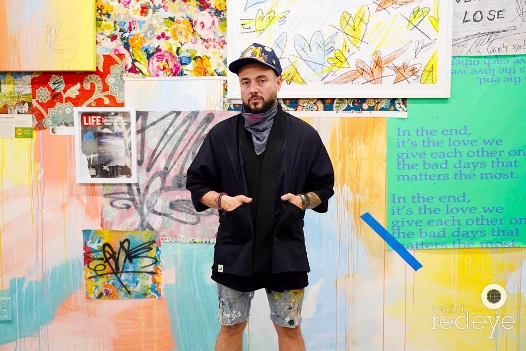 On Saturday evening, End to End Gallery hosted their first gallery show at their new location in downtown Hollywood on 2000 Harrison St. To kickoff their monthly exhibits open to the public, free of charge, End to End Gallery hosted the opening reception for “Inevitable Unknown,” a solo exhibition by Tiago Magro, a mixed-media artist born in Brazil with a work that exudes ’80s and ’90s influence while captivating a modern palette and refreshing energy. “Inevitable Unknown” features nine new large-scale mixed media paintings made by Tiago Magro during this year that saw great change and forced many to adopt, overcome, and proceed to the journey of the inevitable unknown.