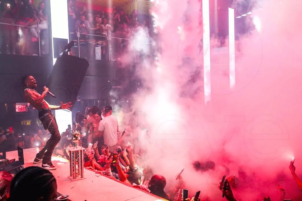 Travis Scott went into full sicko mode on Sunday night when he rocked the crowd with an absolutely insane performance, featuring crowd surfing, head-banging, and some surprise guests. Sheck Wes and Don Toliver joined him on stage, while Kylie Jenner was spotted supporting from the DJ booth alongside DJ Stevie, Foodgod, and Chase B. In the crowd, 2 Chainz, Bella Thorne, and Mack Maine were seen partying along, and even Floyd Mayweather, Rauw Alejandro, Sean O’Malley, Shenseea, Zoey Dollaz, and Too $hort also stopped by the club to get in on the action. World Red Eye