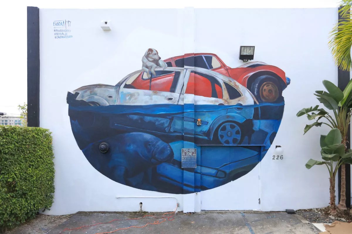 As part of the project, four local Miami artists (Tatiana Suarez, Evoca One, Nicole Salgar, Ernesto Maranje) each created a public mural addressing sea level rise – a major issue for South Florida (since Miami Beach is predicted to be underwater one day).
