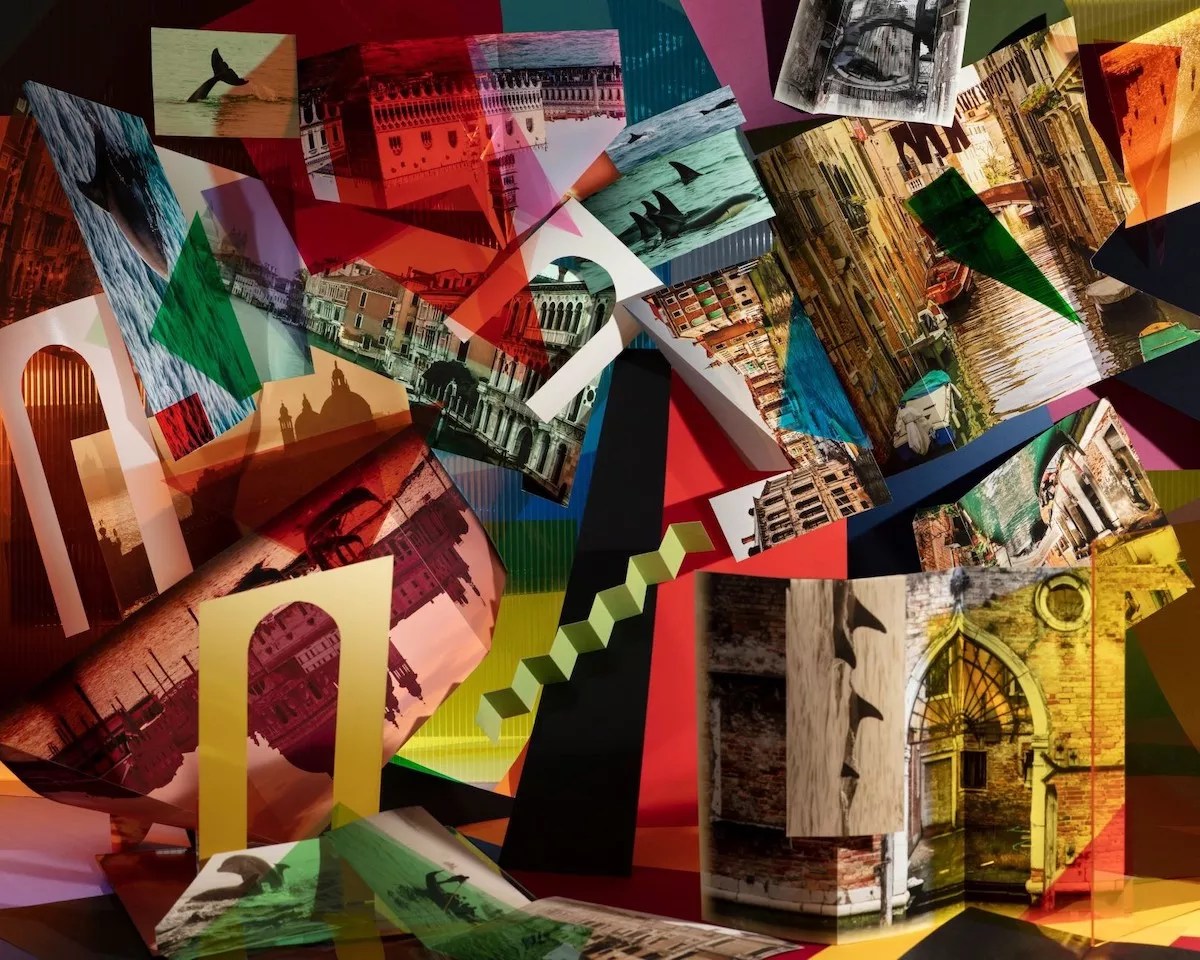 But, of course, it wasn’t true. Samoylova’s Dolphins In Venice, a vibrant photo collage with a striking color scheme, boldly captures the quirkiness of the event.
