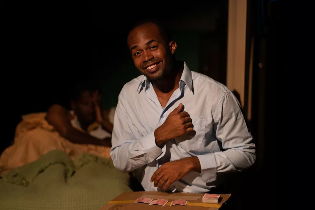 Roderick Randle as Booth tries to summon some of his brother’s prowess with the cards in Topdog/Underdog.