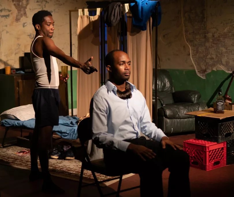 Roderick Randle as Booth and Denzel McCausland as his brother Lincoln in Topdog/Underdog
