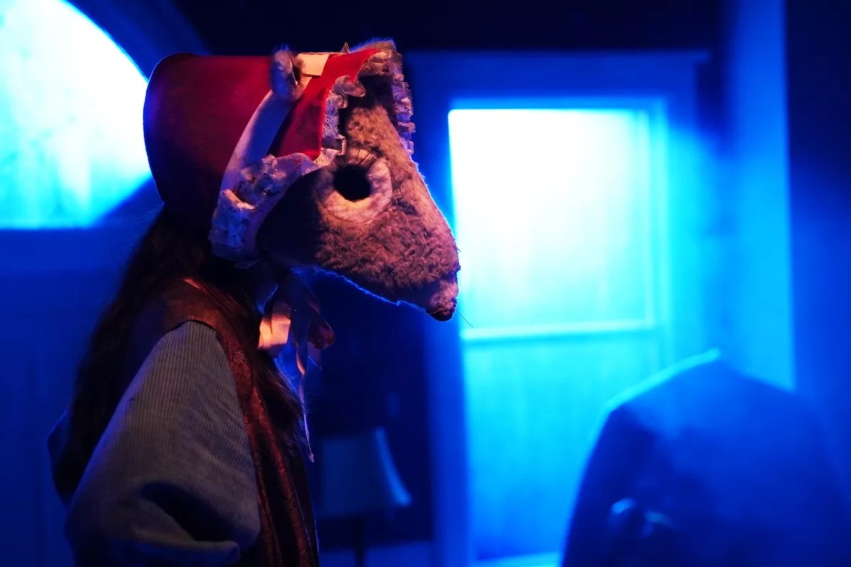 Alice and the Mad Tea Party‘s interactivity does, however, bring new life to an oft-told tale in little ways, whether that’s being dressed up like the suite of cards at a croquet tournament or being lectured by the Mock Turtle and asked to be his assistant. Beyond that incorporation of the audience, witnessing the ways Rodaz chooses to present some of the story’s more fantastical elements is nothing short of delightful. Take Alice’s size changes upon eating or drinking. Her shrinking is as simple as having one actress be swapped out with a child actor, appearing from just under a table as though transformation has truly happened. When she becomes a giant, gorgeously made puppet hands come through doors and corridors for all to witness. This kind of moment, as well as one space transforming into another, enlivens the text and makes all the tiny technical issues – like a soundscape that sometimes overwhelms spoken dialogue – easy to ignore.