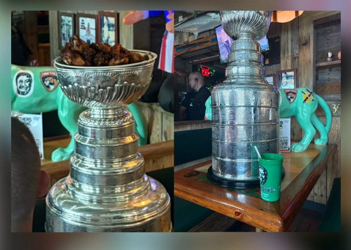 The Panthers’ Stanley Cup has officially made its way to Flanigan’s Seafood Bar & Grill, and South Florida fans are losing it.