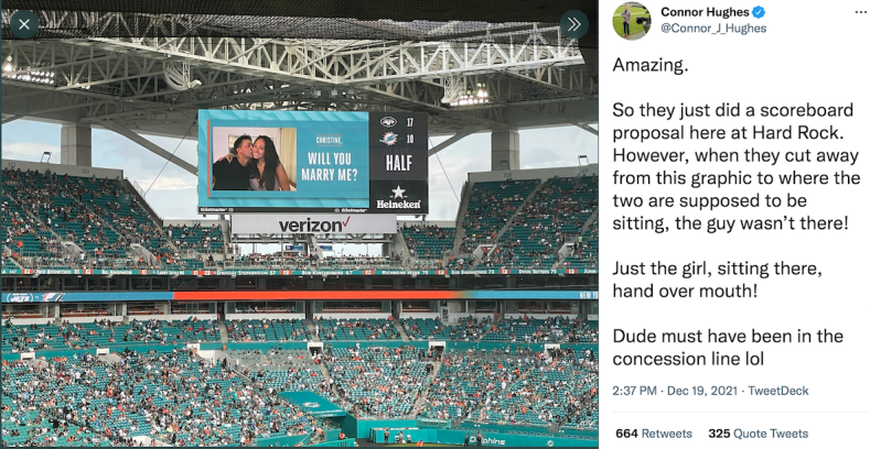 Christine’s boyfriend was not in his seat when “Christine, Will You Marry Me?” appeared on the jumbotron.