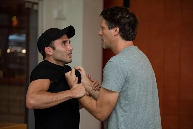 Two men with dovetailing psychosexual needs find a way to connect in Borrowed.