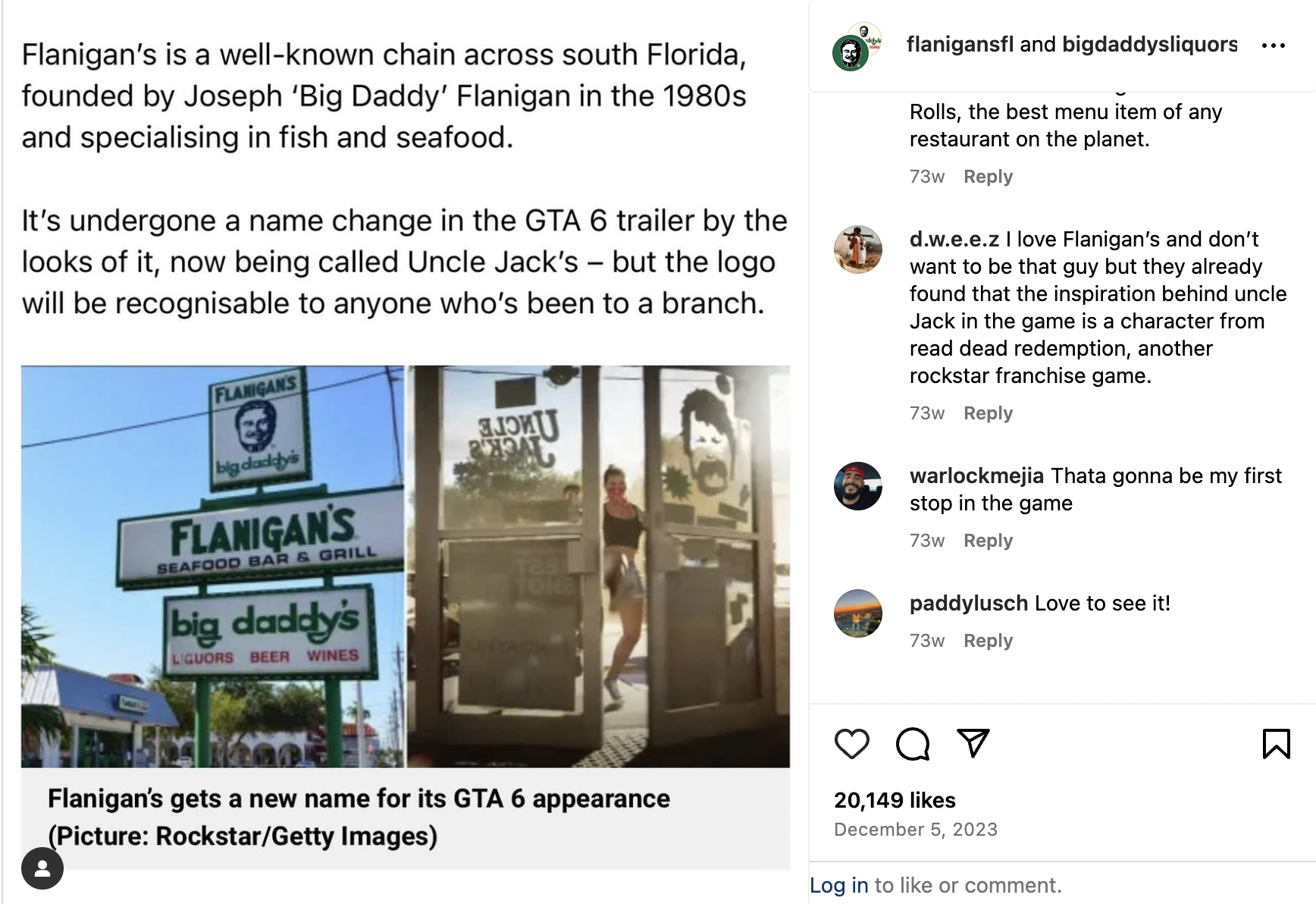 The Flanigan’s cameo is subtle but unmistakable. However, the storefront in the Vice City-based game has a different name: “Uncle Jack’s.” For many in South Florida, this isn’t just an Easter egg – it’s a clear nod to South Florida culture, and Flanigan’s even confirmed the shoutout to its own fans back in December 2023.