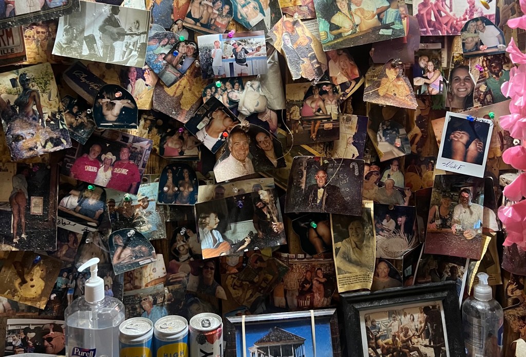 A very NSFW (not suited for work) collage of printed photographs from over the past several decades on display at the legendary Chart Room Bar. If you look closely, you’ll see a few photos of the late Jimmy Buffett.