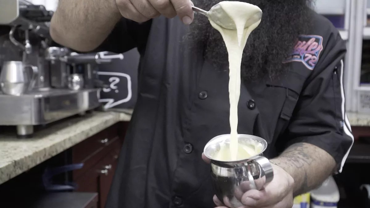 “When it comes to Cuban coffee, you want that espumita,” he emphasizes, “and what this does is turns the whole thing into a cup of espumita.” Only in Miami.