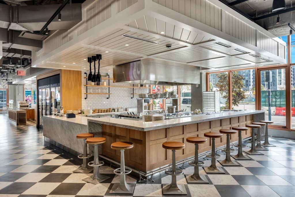 To round out the meal, the space features a central bar with Italian wines and a dessert station serving house-made gelato. Additionally, many of the ingredients used, such as private-label olive oils and pastas, are available for purchase at the Mercato.