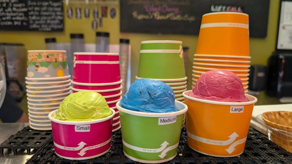 Beyond scoops, the menu included ice cream flights, oversized banana splits, ice cream nachos, shakes, and sundaes with house-made toppings. The shop also drew crowds for its extensive vegan and non-dairy options, often offering more than a dozen plant-based flavors at a time.