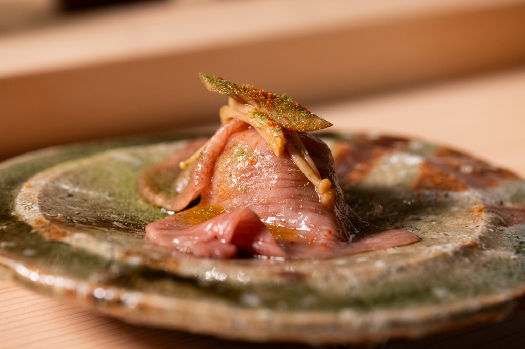 Tanaka curates the sake list himself, focusing on Shichiken sake from Yamanashi, his hometown. “I really connect with their mindset of never settling for the status quo and always striving to evolve,” he said.