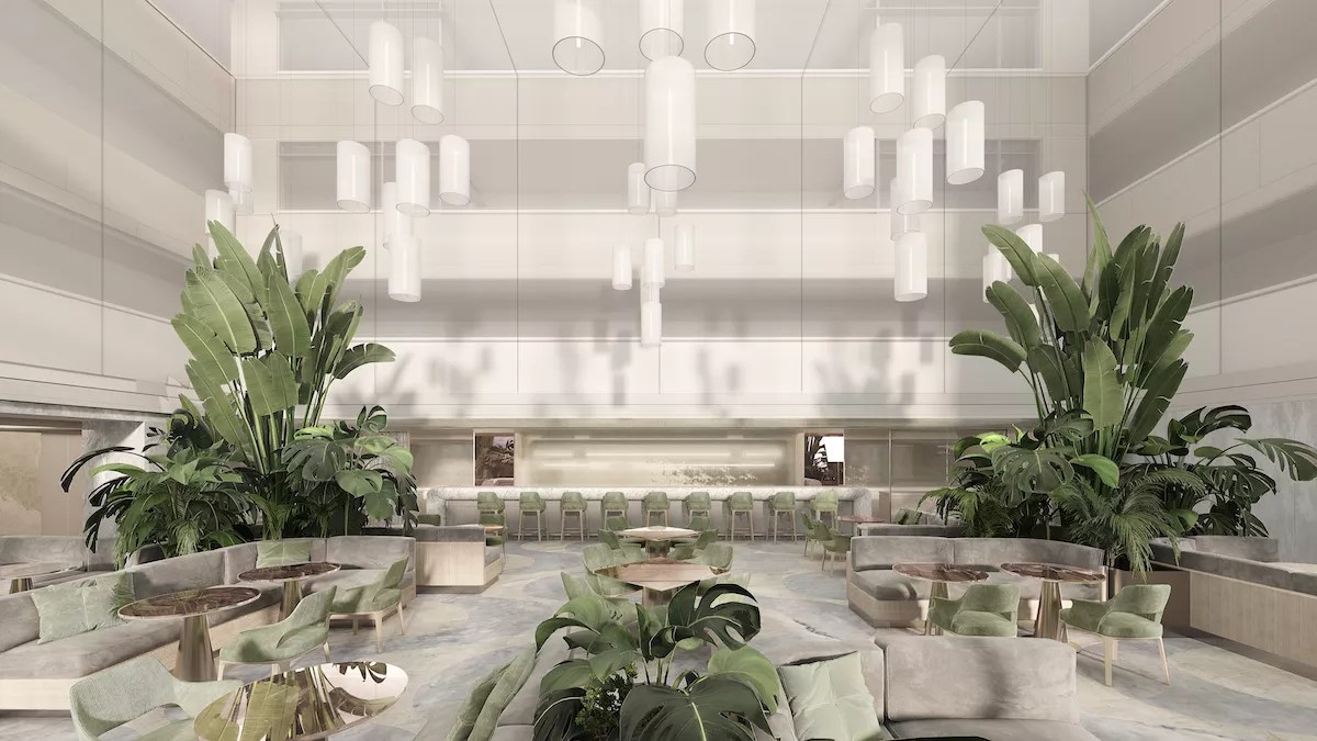 A rendering of the light-filled space occupied by celebrity chef David Myers' Adrift Mare in the Hotel AKA Brickell