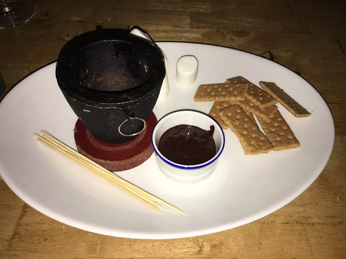 There’s nothing Greek about s’mores, but who doesn’t love them? Especially when you get to make them yourself. It’s difficult to tell in the above photo, but there’s a fire inside that black pot.