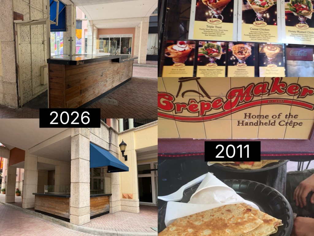 If you didn’t go to the CrêpeMaker at Sunset Place, at the Falls, or at your cousin’s first communion when her parents catered it for the after party, did you really grow up in Miami? The outdoor kiosk with a tiny built-in kitchen, complete with a circular griddle, always felt like the busiest place at Sunset. Located right outside the American Eagle store on the first floor, facing the giant staircase leading up to the AMC theater, those crêpes were seriously my favorite. I always ordered the ham and cheese, the “Pizza,” or went for a classic Nutella and strawberry. In the words of proud Miamian and local historian, Abel Sanchez, “The lady who made the crepes at CrêpeMaker made them so good. They were so fresh. We’d grab a crêpe and sit outside of AMC on one of those circular benches, you know, and knosh on that and then go in the theater. That’s if I wasn’t stuffing my face at the theater.” Fun fact: they’re still around today as a catering business.