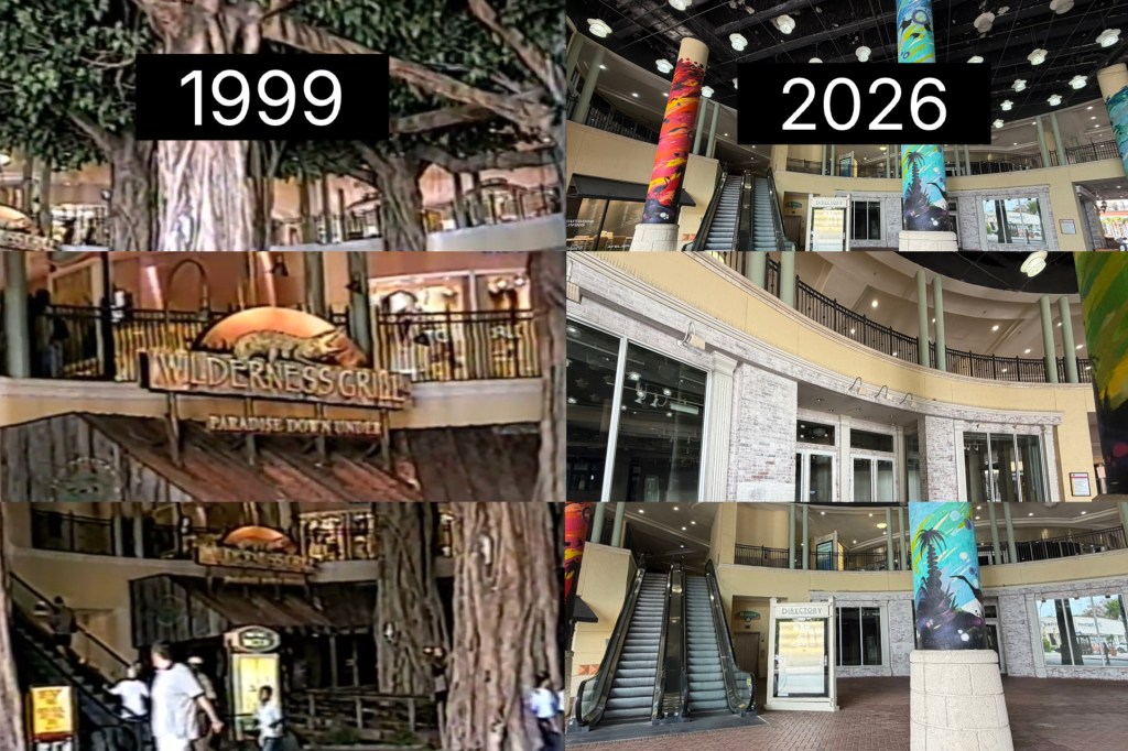 The restaurant designed to impress almost everyone who set foot in Sunset Place, Wilderness Grill, “Paradise Down Under,” was the true restaurant anchor of the mall when it first opened in 1999. The restaurant featured impressive faux Banyan trees outside, and its operators even had a “rolling thunder” sound effect on at all times. It was basically a knock-off of Rainforest Cafe, but it was ours. According to Miamians, there was even kangaroo and emu meat on the menu, along with a bunch of other Rainforest Cafe knockoffs. It was ridiculous, which is why it only lasted until 2003. Still, I’d kill to see it again. Also, it’s wild to think this would soon turn into a giant, white, and soulless Forever 21.