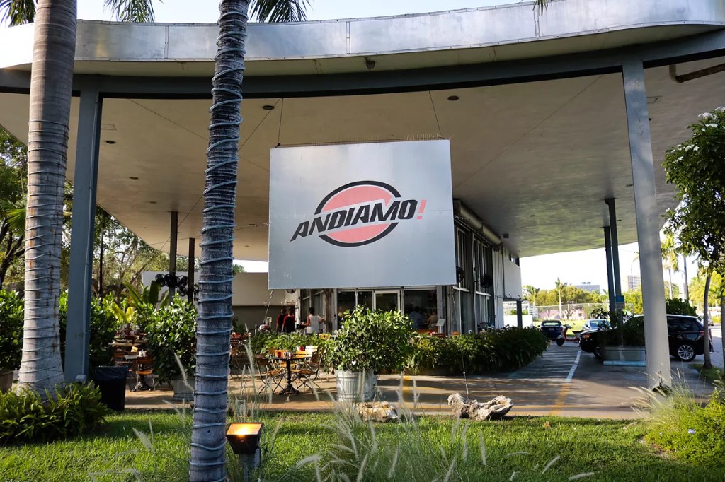 Andiamo opened in 2001, founded by Mark Soyka and his wife, Sasha, long before MiMo became the dining hotspot it is now. The restaurant occupies a former Standard Oil gas station, designed in 1954 by architect Robert Law Weed, a glass-heavy, mid-century structure that later became one of the neighborhood’s most recognizable landmarks.