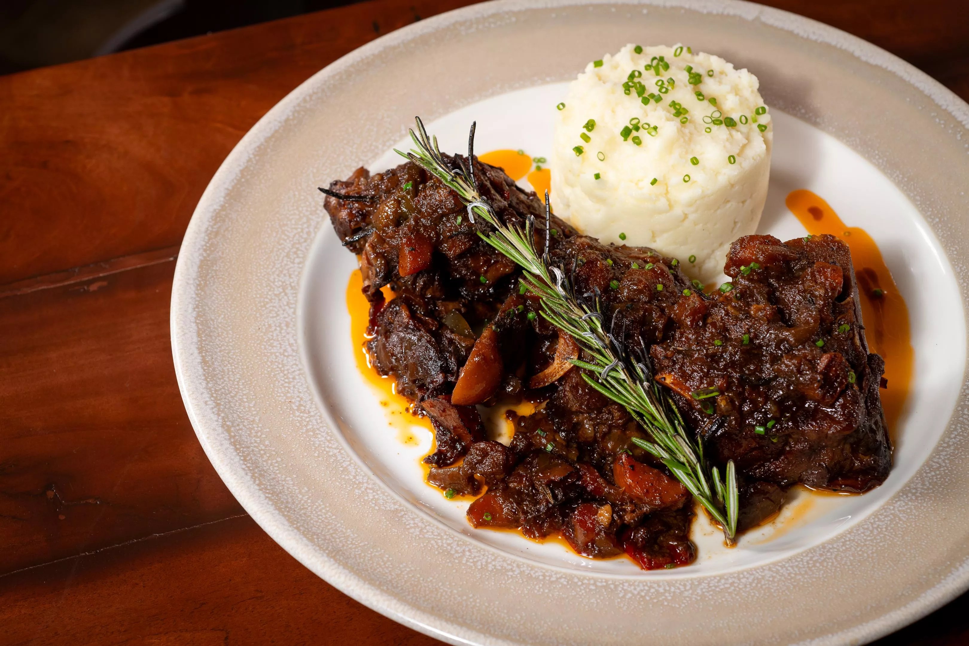 Signature dishes include picadillo a la habanera and maduros served with chimichurri; Spanish sausage croquetas with orange marmalade; rabo encendido with wood-fired oxtail; tostones chilindrón de chivo with braised goat; and filet mignon with walnut and anchovy sauce.