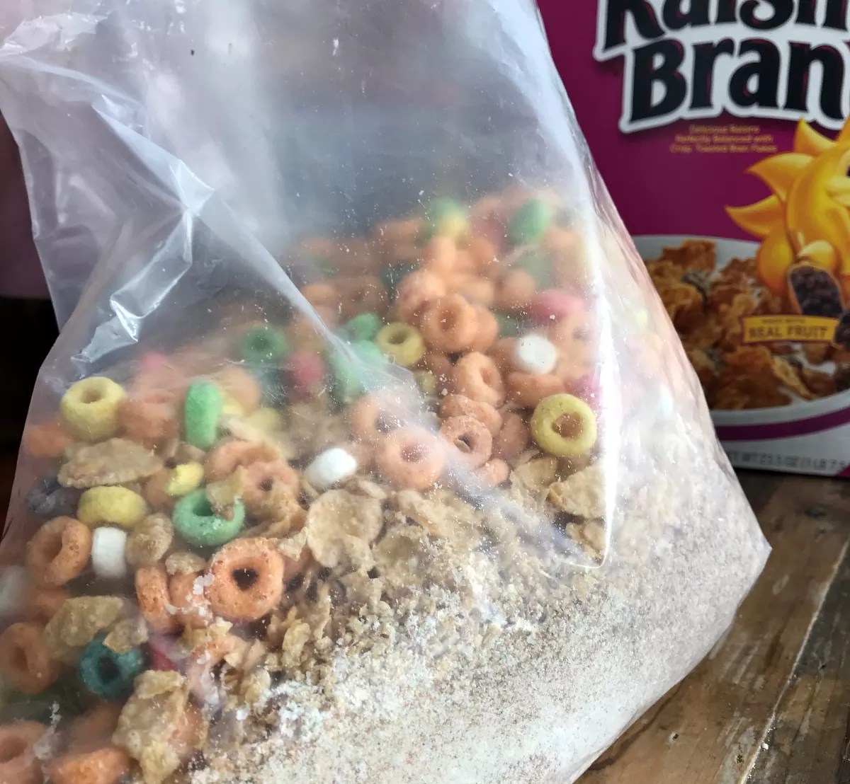 When Miami chef Jamie DeRosa opened a new, sealed box of Raisin Bran for his daughter Isabela’s breakfast, he was surprised by what he saw. Instead of the usual golden flakes and raisins, there was a cornucopia of what looked to be rainbow loops, marshmallows, and corn flakes – everything but Raisin Bran.