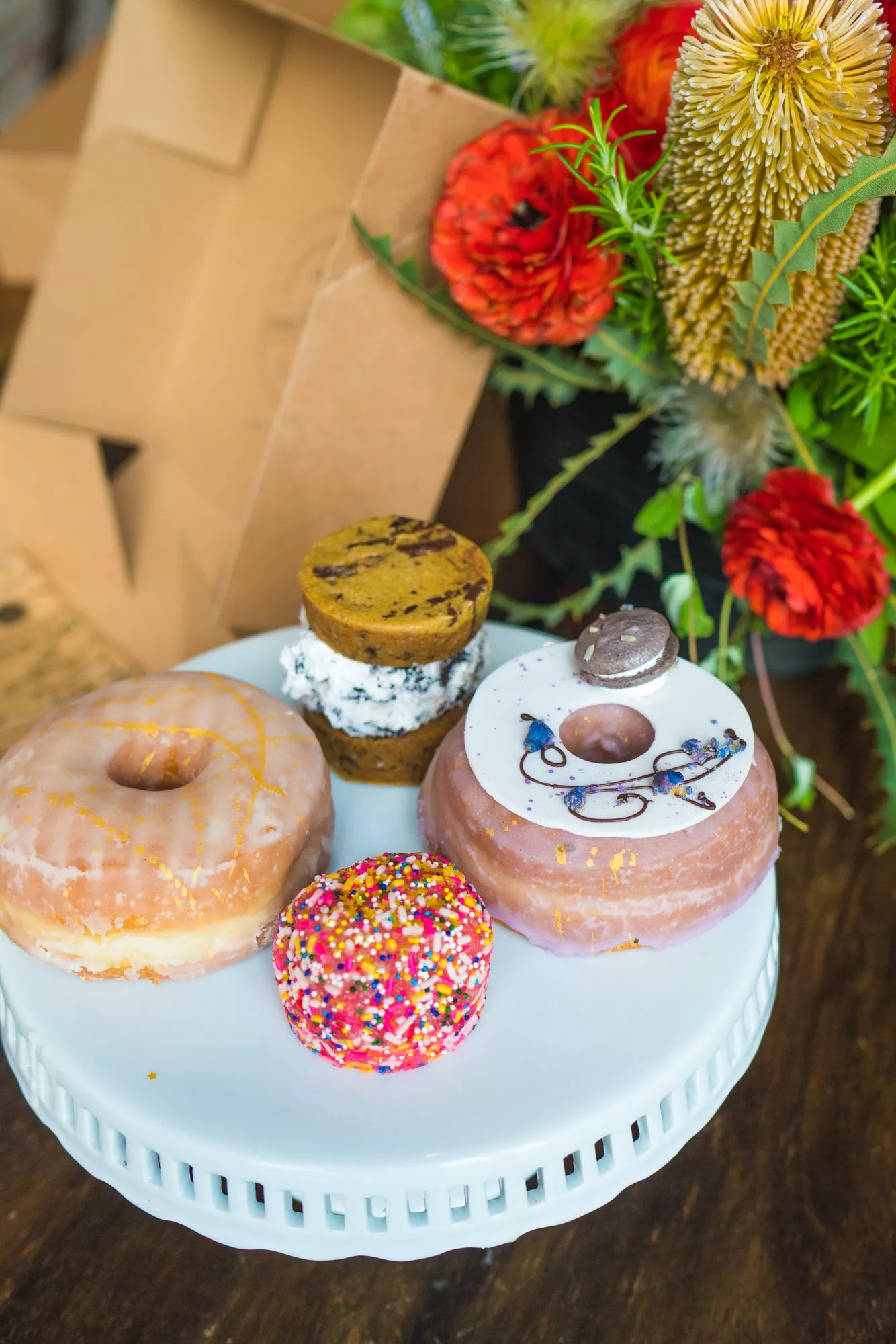 This Saturday morning, the Salty Donut and MDoughW will launch an exclusive dessert box on UberEats. The collaboration will include two treats from each business. Expect a traditional glazed doughnut splashed with a 24-karat-gold drizzle, and a white chocolate and lavender doughnut crowed with a mini purple macaron from the Salty Donut; and a chocolate chunk cookie dough sandwich filled with Oreo buttercream, along with a pink fudge brownie coated in rainbow sprinkles, from MDoughW. Each box will be available to order beginning at noon Saturday for $20. Deliveries will be made throughout Miami-Dade Count, and demand is expected to be high. If you miss the UberEats promotion, keep an eye out on Mother’s Day, when the Salty Donut will release both flavors at its Wynwood shop.
