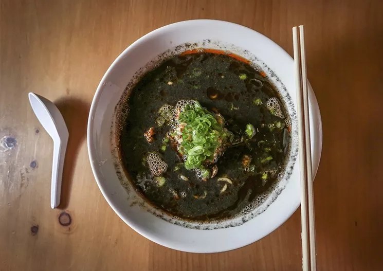 3. Spicy black miso ramen at K Ramen. Burger. Beer. Miami has a serviceable selection of ramen. Yet most choices involve the thick, sticky pork-bone broth tonkotsu, which is produced by running boilers for hours on end. Thus, much of the ramen comes at a hefty price. Now enter K Ramen’s spicy black miso. It starts with chicken carcasses that are boiled with kombu, leeks, shiitake mushrooms, bonito flakes, and other aromatics to create a fragrant, delicate broth that by itself would suffice as the base for a fine chicken soup. Next comes a heroic dose of salty black miso that turns the brew an evil ebony. A dose of chilies and cracked sesame seeds lends an alluring spice and a nutty flavor that pairs smartly with the miso and clings to thin, chewy noodles that diners can slurp until 2 a.m., all for a mere $14. 150 20th St., Miami Beach; 305-534-7895; sbe.com/restaurants/locations/k-ramen-burger-beer-south-beach.