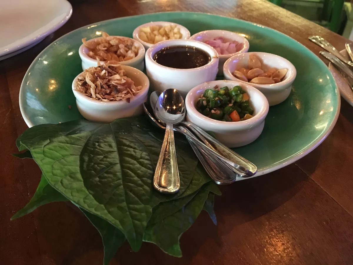 4. Miang Kham at Atchana’s Homegrown Thai. Miang kham means “perfect bite.” And at Atchana’s in Coconut Grove, there’s no better way to describe the $14 dish owner Atchana Capellini has been waiting decades to serve. One of the many small dishes arranged on a large plate holds wrinkly pale-pink dried shrimp. In another are toasted coconut flakes. Yet another bears tiny beige cubes you later learn are bits of ginger and garlic. Even the leaves look different. Rather than the ruffled bright-green fronds of buttery iceberg lettuce, betel leaves are deep green and spade-shaped, with an almost unnoticeable flavor. But when they’re all combined with a few bits of crushed peanuts, sliced shallots, a squeeze of lime, and a dash of spicy-sweet tamarind sauce, the flavor rings true to the name. The coconut’s sweetness underlines the dried shrimp’s salty savoriness. The ginger and shallot add a spice that’s hemmed in and rounded out by the coconut and sour tamarind. It may have taken a while for this longtime Thai restaurant owner to put it on her menu, and now that it’s there, you have quite a bit of catching up to do. 3194 Commodore Plaza, Coconut Grove; 305-774-0404; atchanas.com.