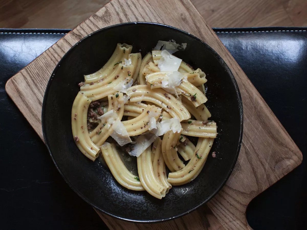 2. Estrella pasta at Upland. Of all the dishes at Justin Smillie and Stephen Starr’s South of Fifth haunt, the one rife with creamy chicken liver is most shocking. The house-made estrella pasta ($21) builds on long tubes of extruded dough boasting a star-shaped cross section, hence the name. The toothsome noodles are cut to a manageable size and tossed in a simple sauce of chicken livers enriched with sherry, rosemary, and sage. 49 Collins Ave., Miami Beach; 305-602-9998; uplandmiami.com.