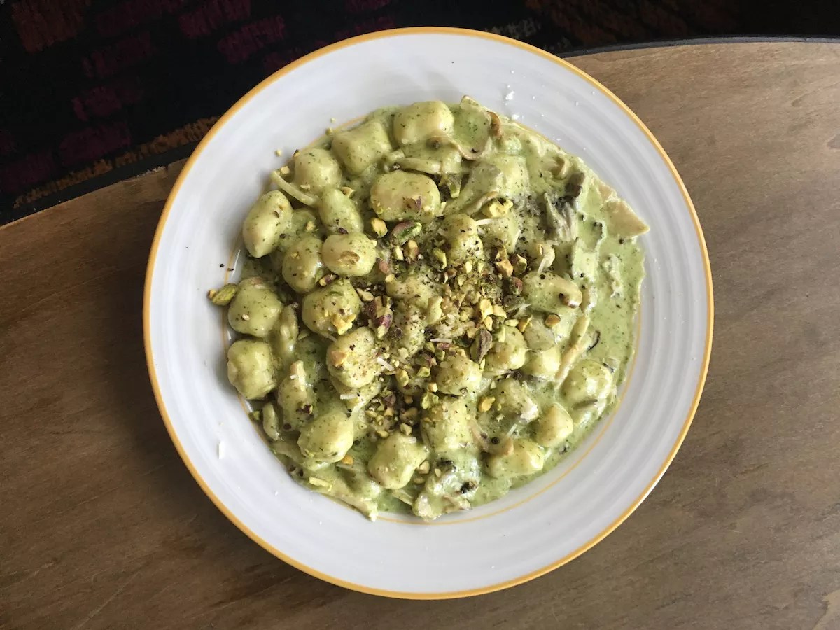 Lunch and dinner offerings include the stomach-distending Colombian classic picada criolla ($20), which comes with chicken sausage, morcilla, sweetbreads, and a chicken empanada. If you’re not looking to clog your ventricles in one sitting, there are Prince Edward Island mussels in a coconut curry ($16) or slices of lamb leg ($22) with an olive and tomato salad alongside hummus and pita. Pillowy ricotta gnocchi ($14) are another good option and come draped in a heavily herbed cream sauce topped with crushed, roasted pistachio for a pleasant textural contrast.