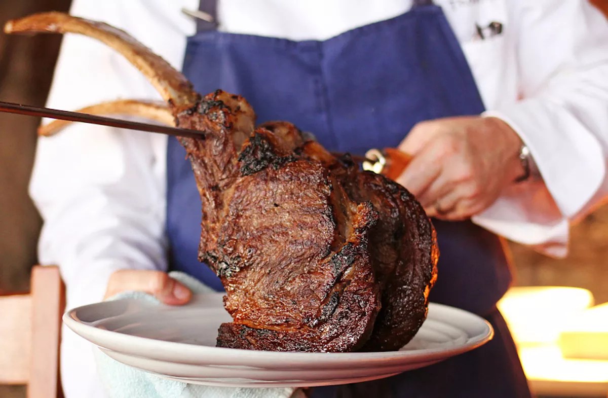 It’s not a high-end buffet without a tomahawk rib eye at the carving station.
