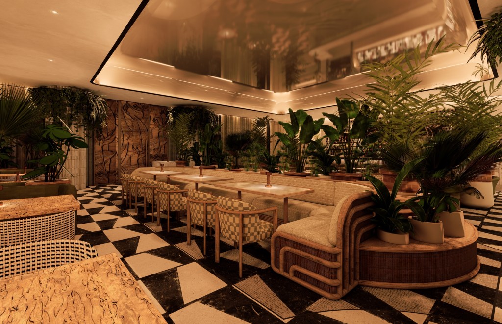 Studio K designed the Miami outpost, focusing on the contrast between a garden-inspired retreat flooded with natural light during the day and a dimly lit lounge under a trimmed lattice dome by night. The 97-seat downstairs bistro and bar aims to be a seamless extension of the brand’s signature steakhouse, located just one floor above.