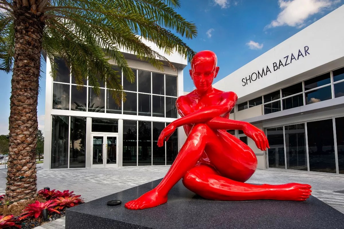 A giant statue greets guests at the entrance to Shoma Bazaar.
