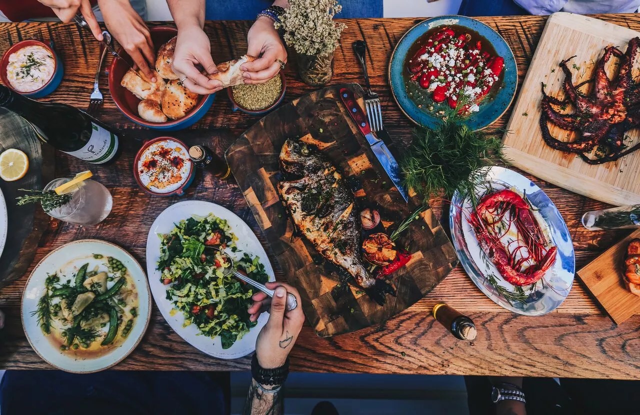 The restaurant’s name is meant to imply a celebratory spirit, according to owner Eric Milon. In his day, Onassis threw lavish parties on the island, including a wedding reception for his bride Jacqueline Kennedy Onassis.