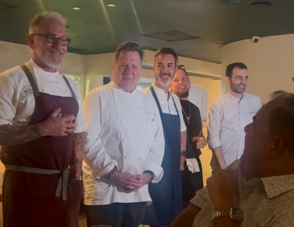 From left: Acclaimed South Florida chefs Michael Schwartz, Norman Van Aken, Henrique Sá Pessoa (of Portugal), Michael Beltran, and Miguel Massens at an event at the former Sereia restaurant in Coconut Grove.