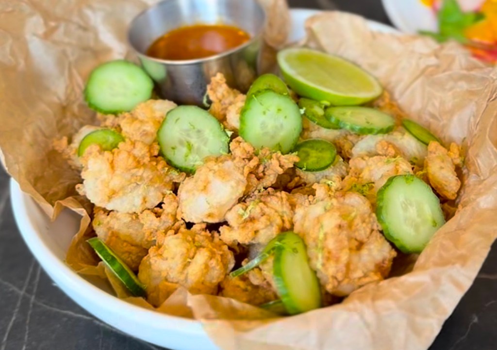 The night opens with “Wu-Tang Clan,” a yellowfin tuna crudo dressed in tangy aguachile with cilantro and Tajín totopos. “Salt-N-Pepa” follows with rock shrimp coated in a 3-0-5 spice blend, lime, and jalapeño. Then comes “Snoop Dogg,” a Wagyu hot dog topped with black truffle ketchup, French onion aioli, and crispy potatoes. “Bun B” delivers chicken parm bao buns layered with basil, tomato, and garlic butter, while “Too $hort” leans into comfort with grilled short ribs, barbecue bordelaise, and cheddar creamed corn.