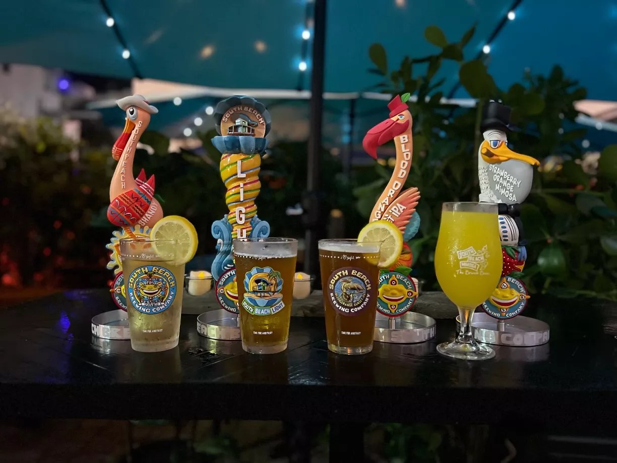 A flight of beers on display at South Beach Brewing Company’s new taproom.