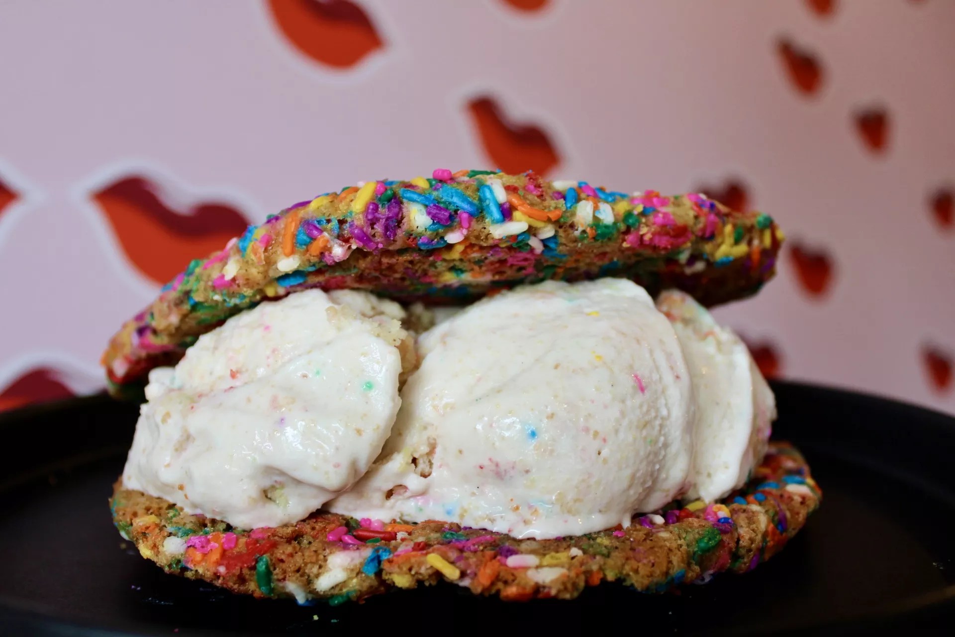 “Stop, Drop & Slay” is a shareable ice cream sandwich with birthday cake ice cream and rainbow sprinkle cookies. It’s available all month at Fireman Derek’s.
