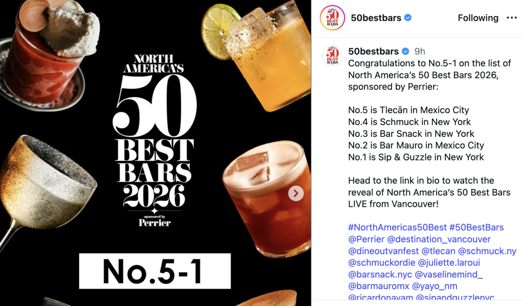Screenshot via Instagram/@50bestbars