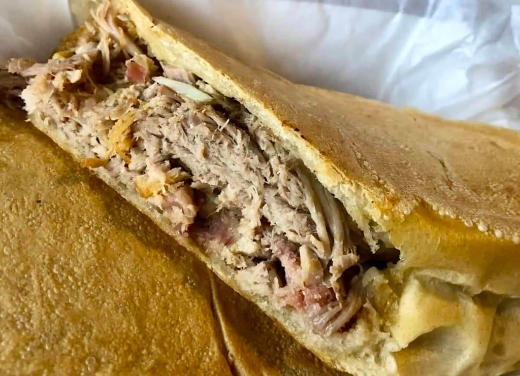 The pan con lechón at The Butcher Shop & Deli in Palmetto Bay might be Miami’s best-kept pork secret, especially when you realize it costs less than $9 out the door. Off-the-bone garlic pork shoulder is chopped and mixed with crunchy chicharrón, piled generously (we’re talking nearly a pound) onto footlong Cuban bread, then pressed until everything melts together into crispy, porky perfection. It tastes like abuela-level home cooking, deeply seasoned, wildly comforting, and so consistent you’ll wonder why you ever order anything else. 14235 S. Dixie Hwy., Palmetto Bay; 305-253-9525; instagram.com/thebutchershopdeli.